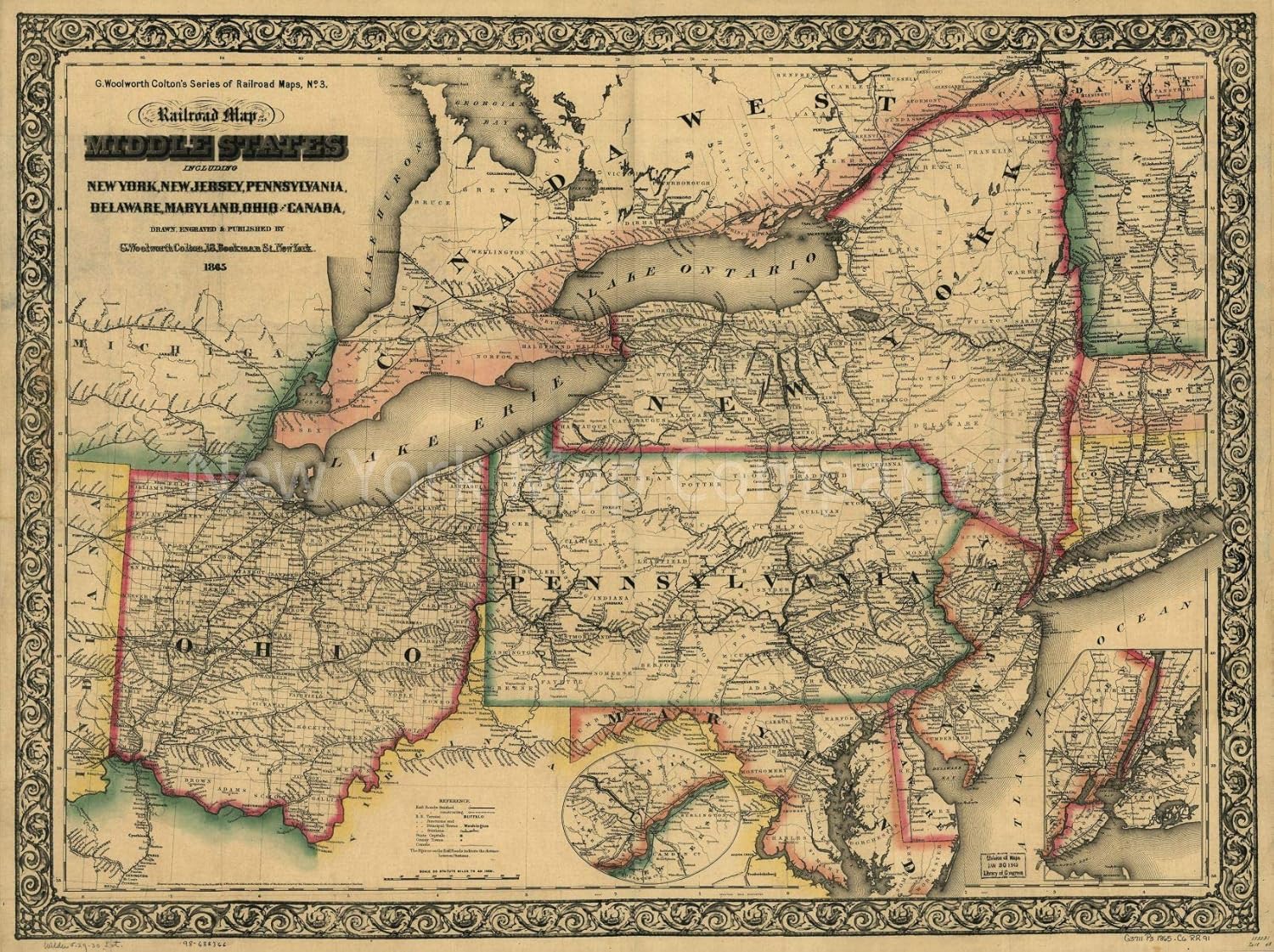 1865 Railroad Map York Jersey Pennsylvania Delaware Maryland Ohio Canada Amazon In Home Kitchen