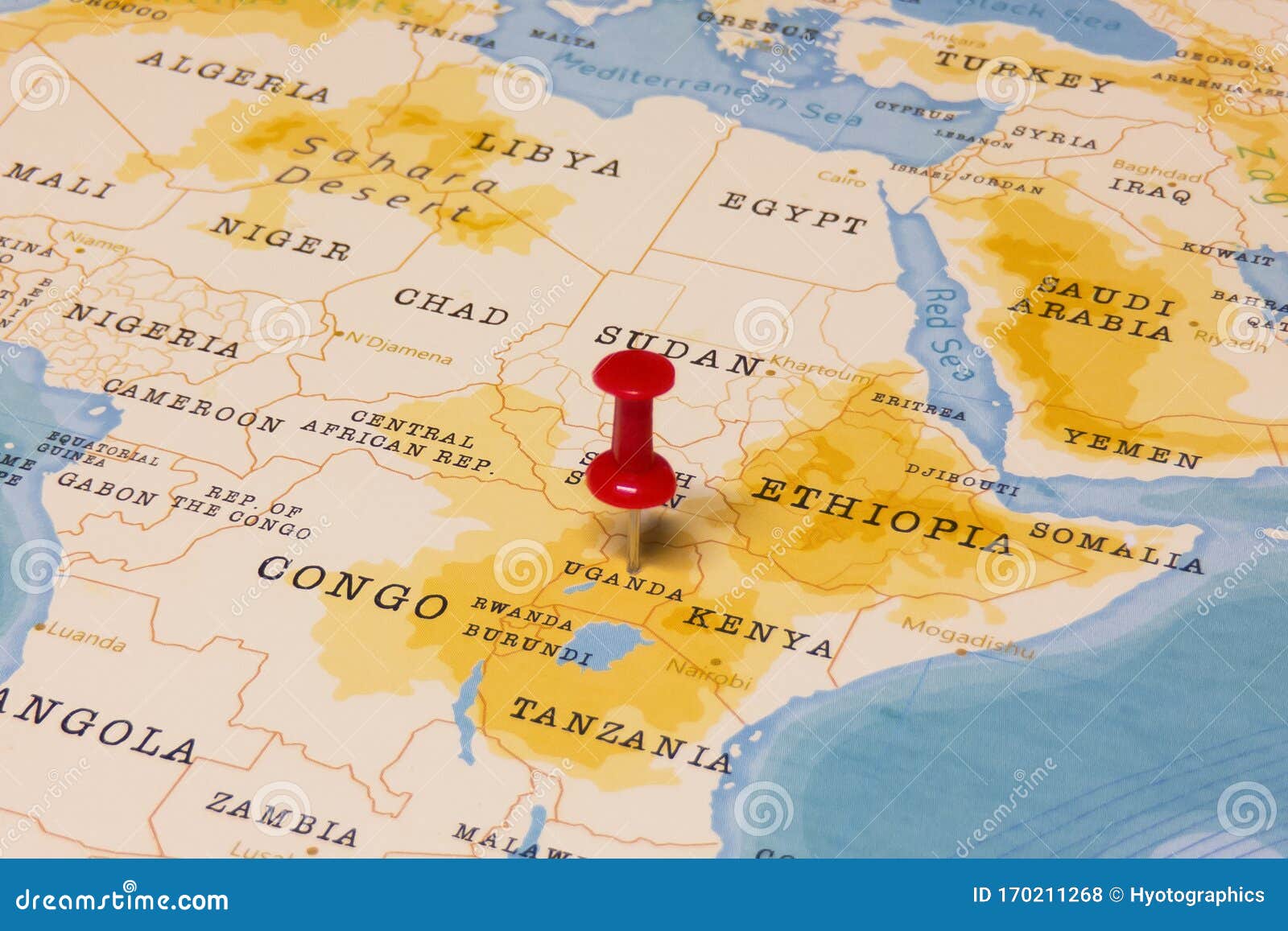 A Red Pin On Uganda Of The World Map Stock Photo Image Of Paper Crime 170211268